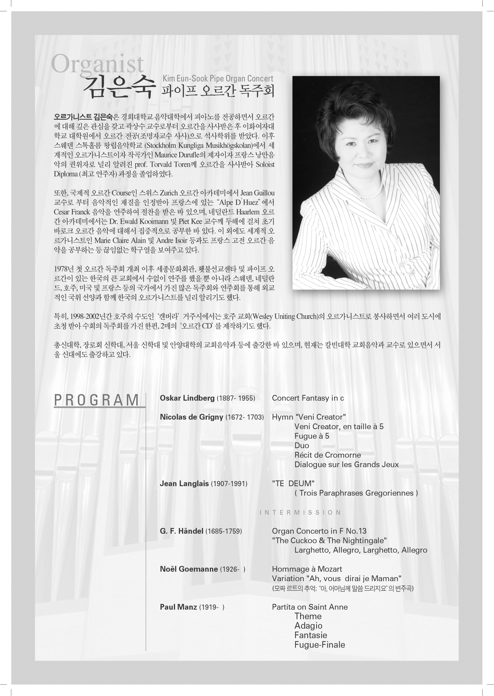김승주동기 부인이신 Organist 김은숙여사의 파이프오르간독주회에