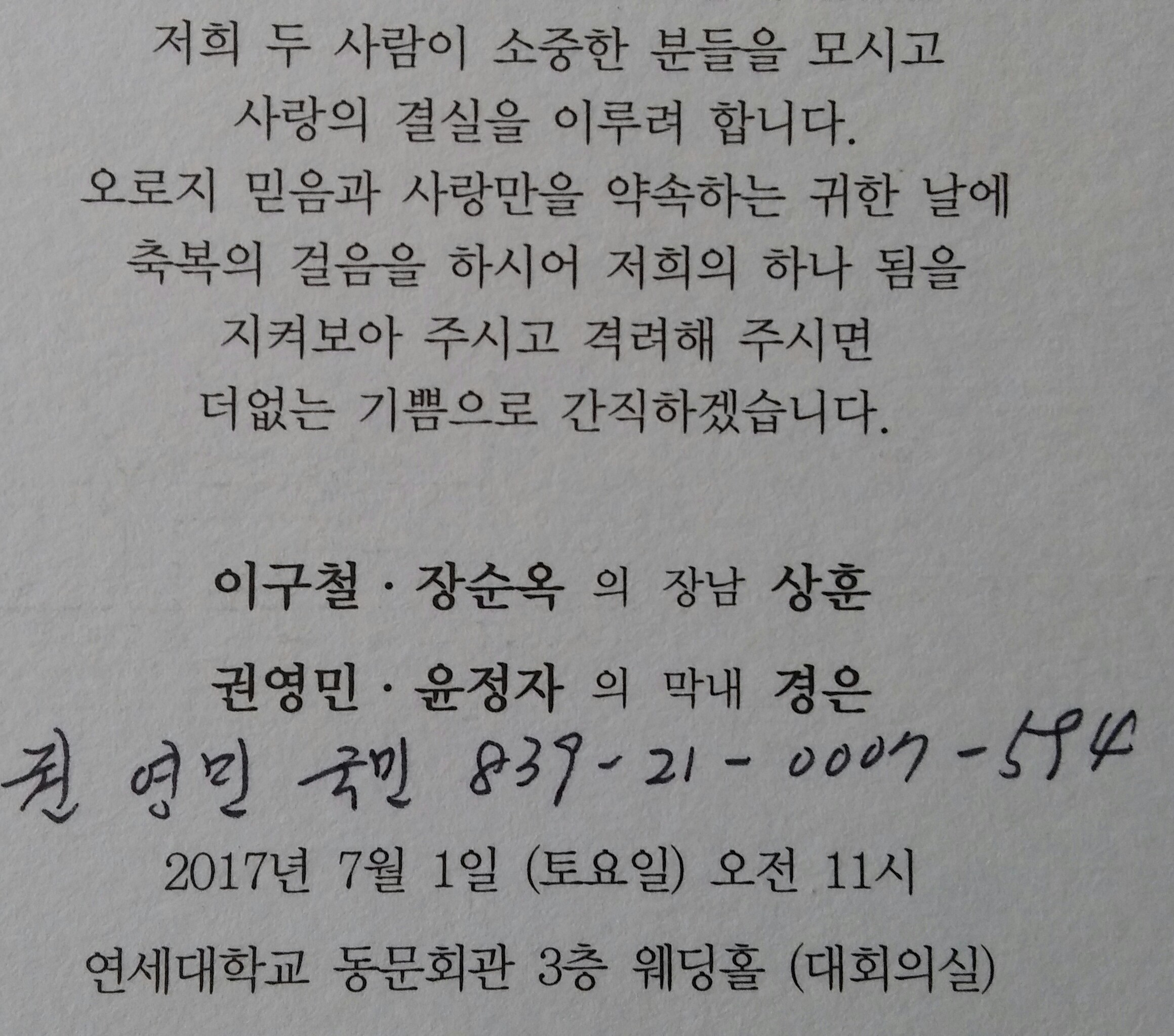 권영민 동기 막내 결혼식