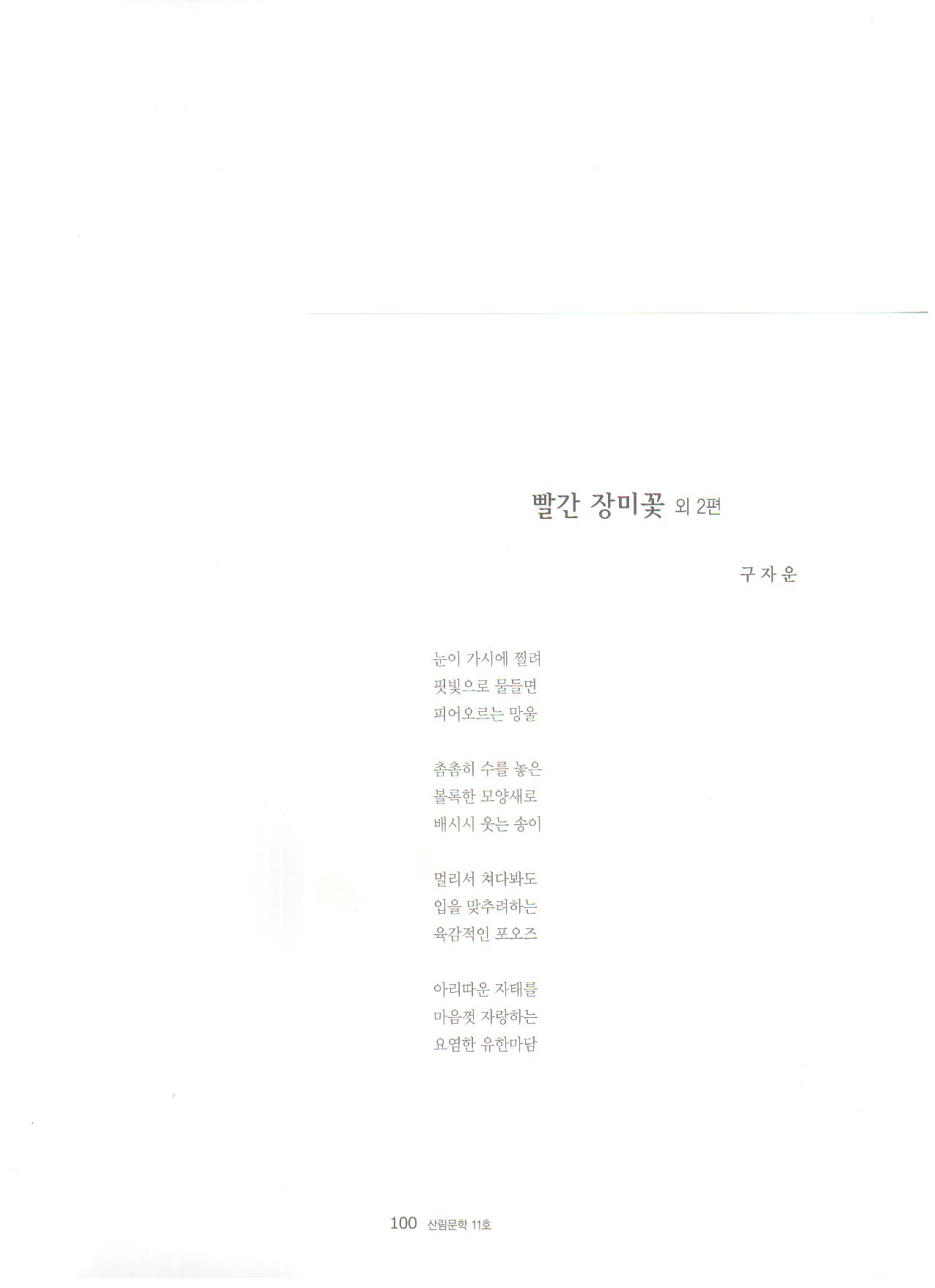 산림문학 2010봄여름호에 무삼 구자운의 시 빨간 장미꽃 외2편이 게재됨