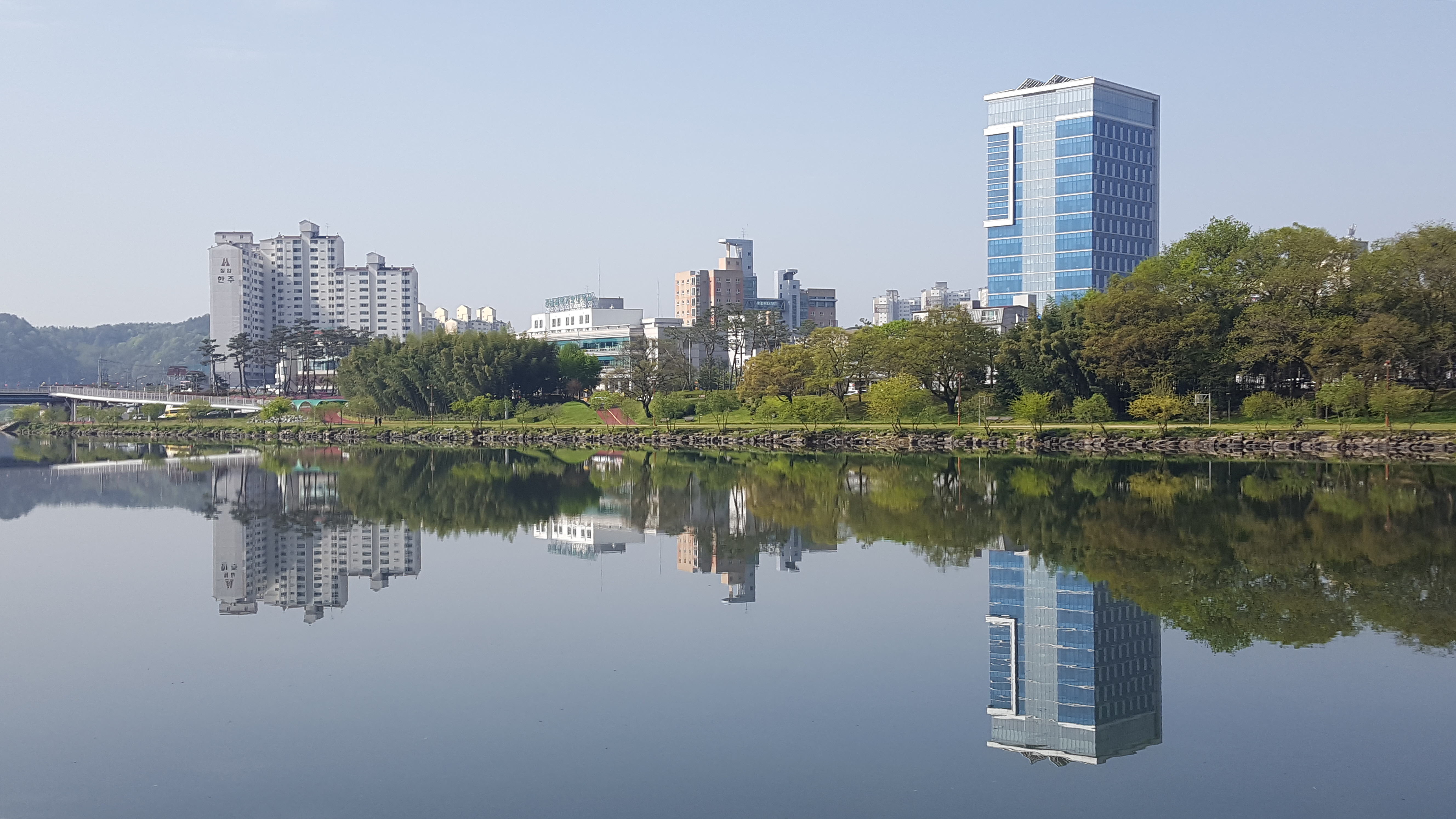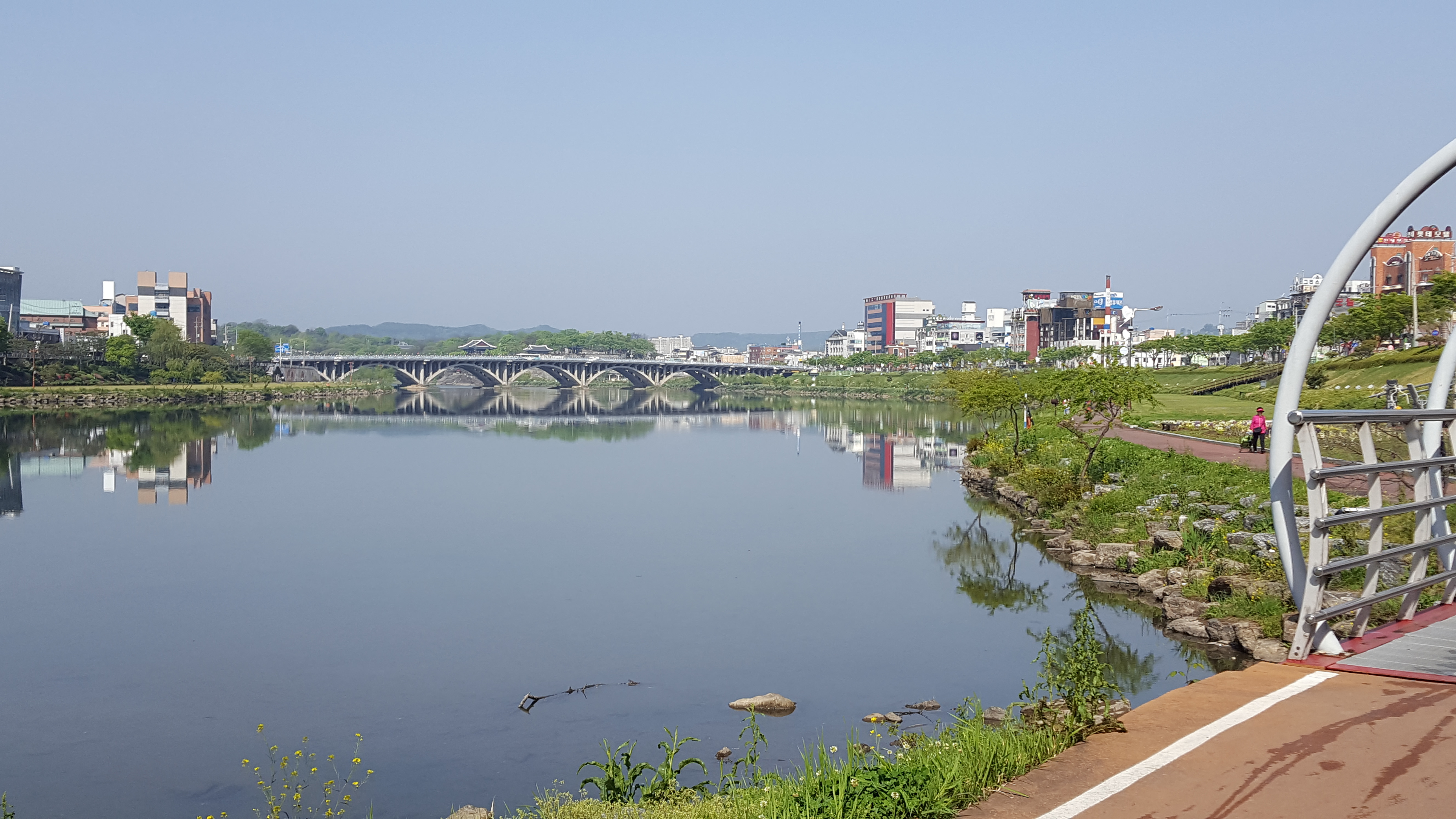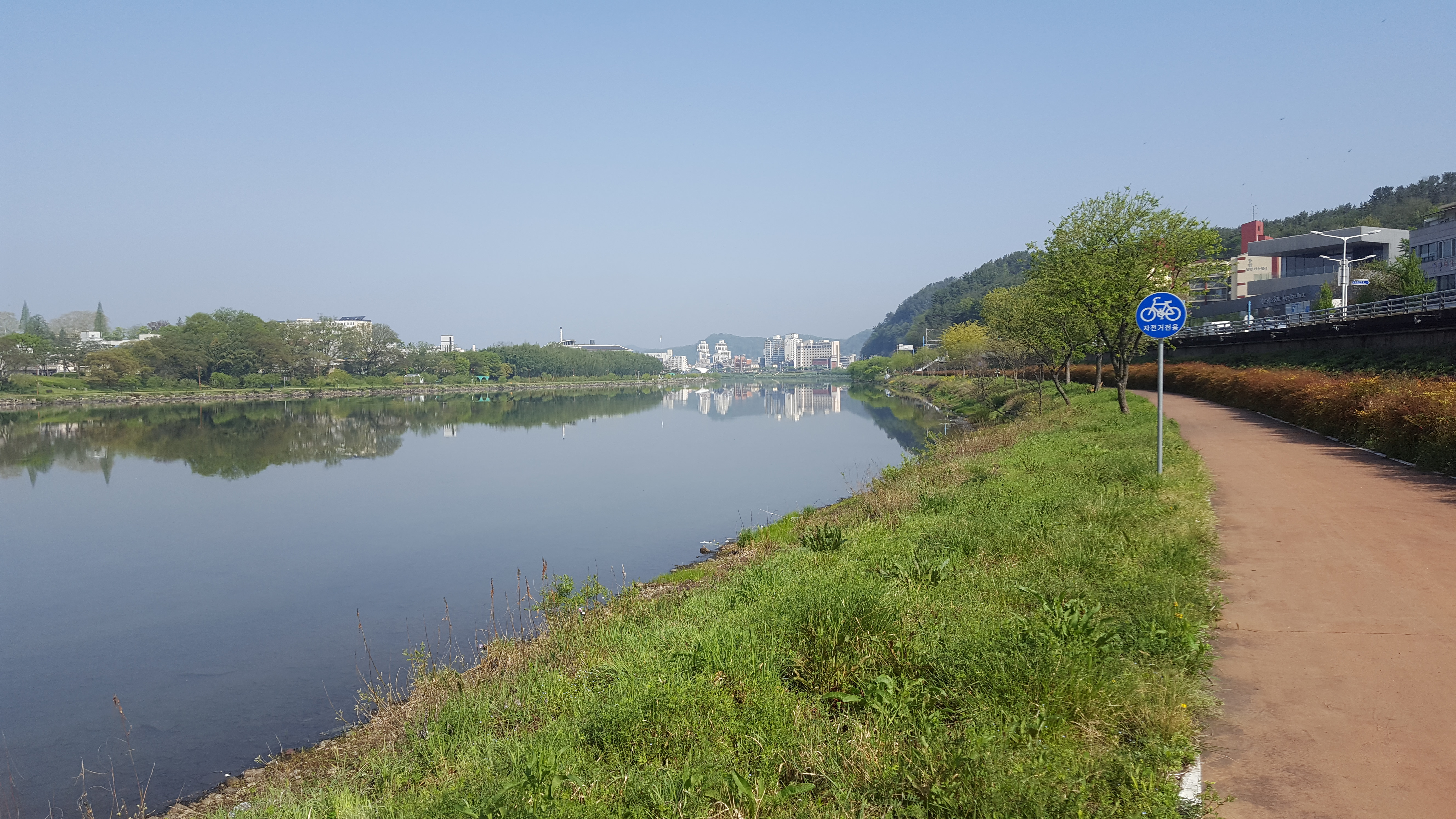 맑은 강물과 하늘 사이에서