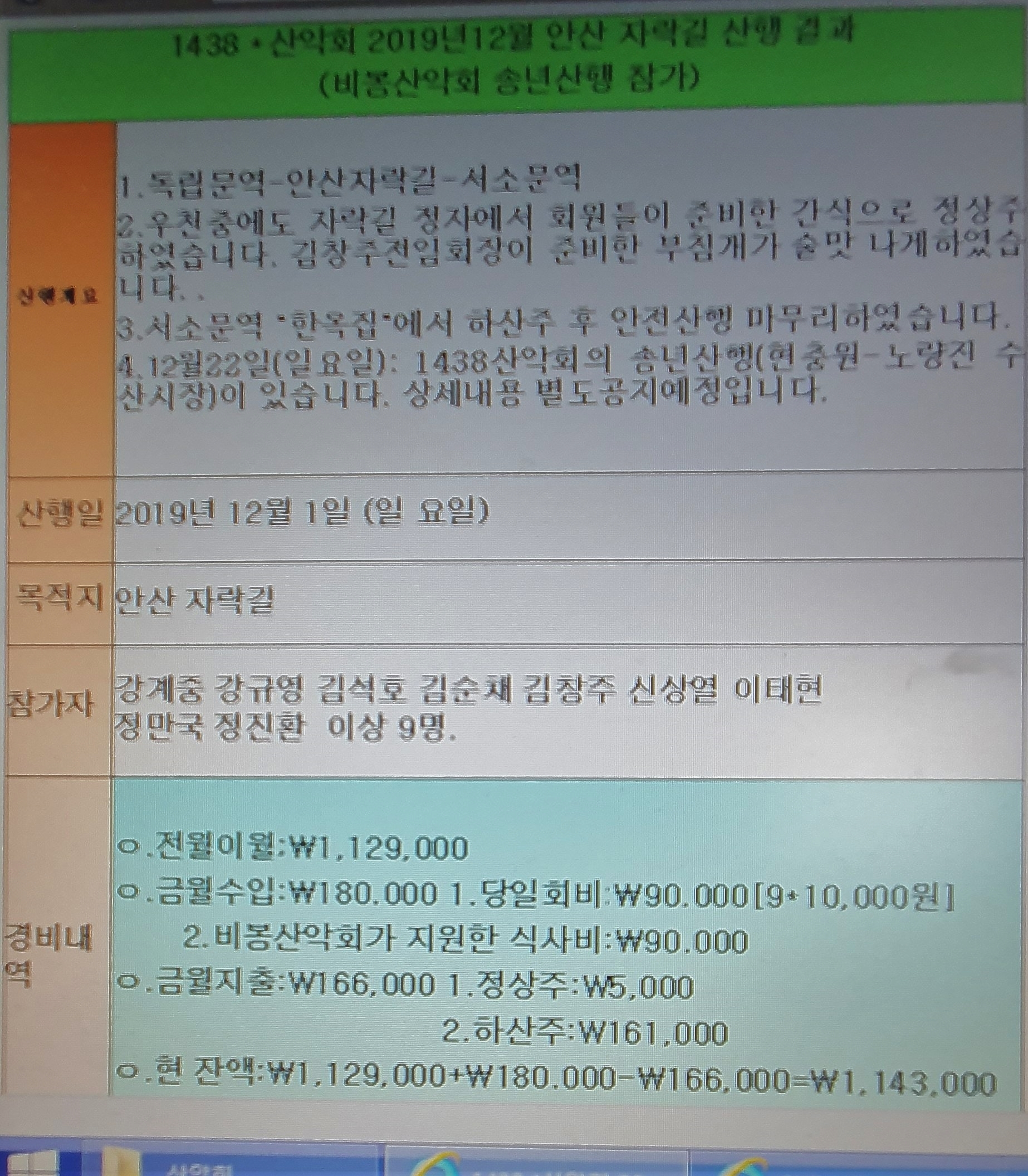 2019년11월 12월 산행결과 페이지 정보 작성자 정만국 작성일22-04-23 19:00 조회2,086회 댓글0건 관련링크 다음글 목록 본문 22019년11월 17일 청계산 옥녀봉2019년 12월 1일 안산자락길(바봉산악회 송년산행)2019년 12월 22일 동작동 서달산 노량시장 송년산행 댓글목록 등록된 댓글이 없습니다. 다음글 목록