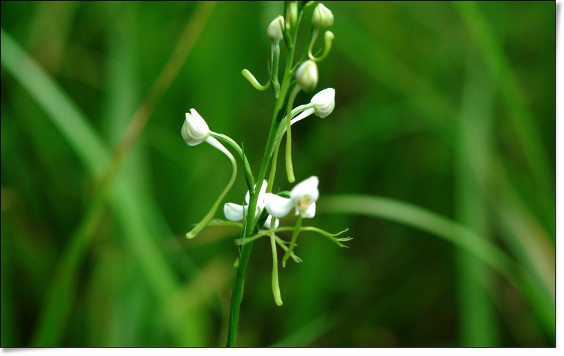 곁에선 하얀 잠자리난이 고혹적인 자태를