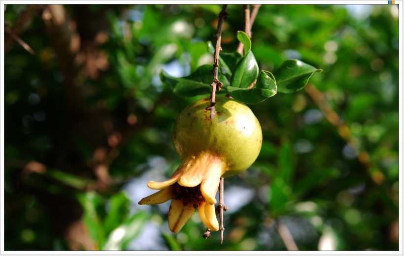 시골의 담장에 핀 석류꽃