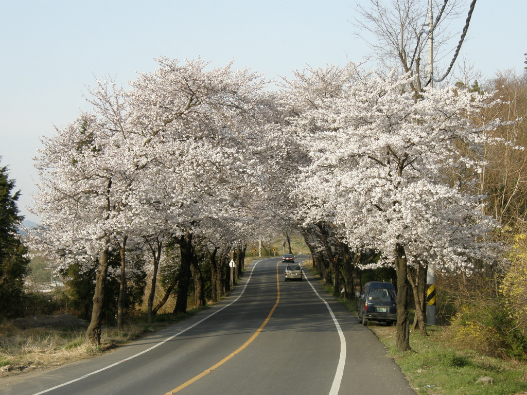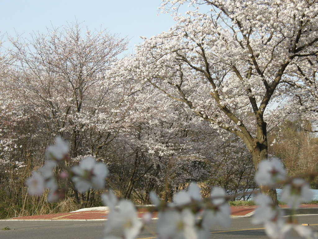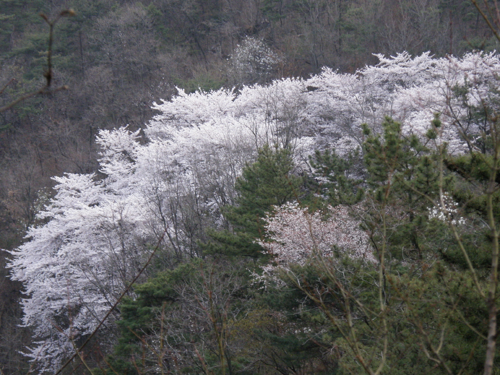 온 산이 벗꽃으로 덮혔다.