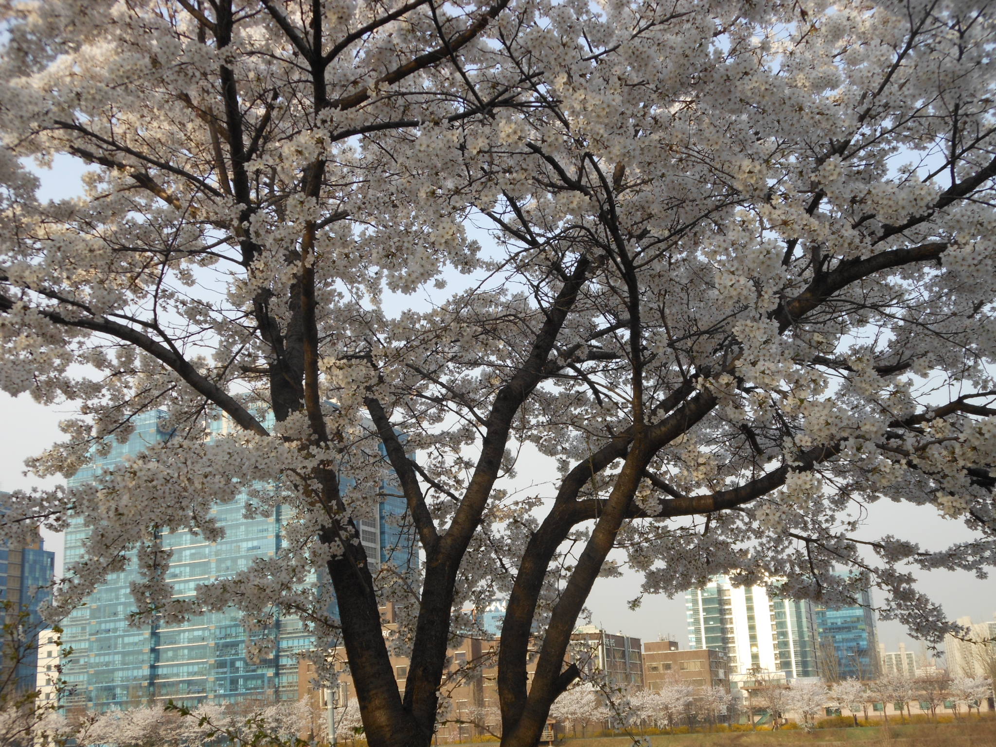 국회의사당 양옆쪽길 왕벗꽂나무 고목에 핀거